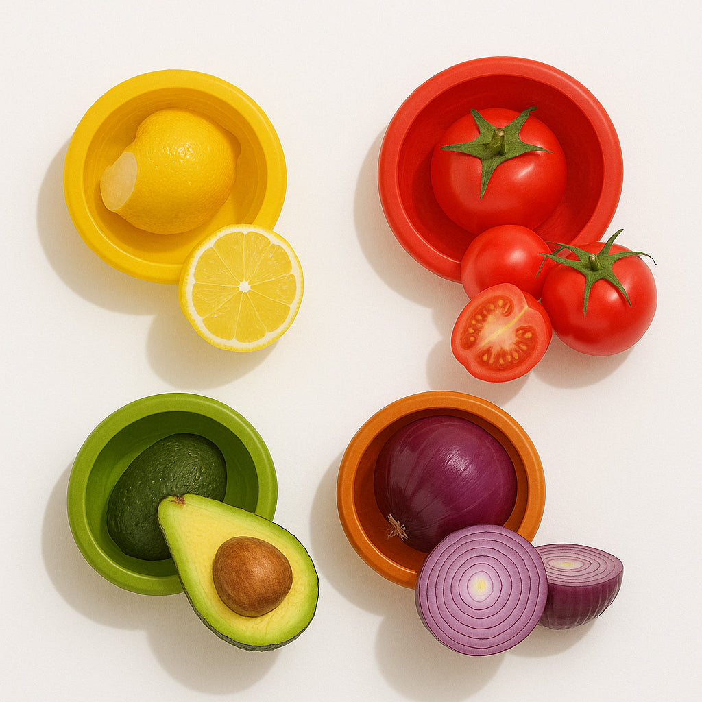 Korkealaatuisen ja joustavan silikonin ansiosta EcoLock™ sulkeutuu tiiviisti ainesten ympärille – olipa kyseessä sitten puolitettu sitruuna, avokado, tomaatti tai sipuli.